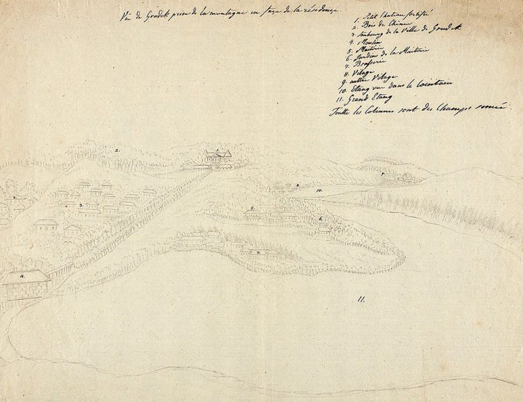 Згодом музей опублікував зображення у високій роздільній здатності та розшифрував рукописні примітки Урсули Замойської французькою мовою. На малюнку графиня не лише зобразила панораму західної частини Городка, а й пронумерувала об’єкти та надала до них короткі пояснення.