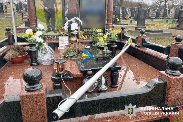Як повідомили в поліції, підозрюваний зламав металевий флагшток на могилі та зняв з нього державний прапор і герб. На момент скоєння злочину хлопець перебував у стані алкогольного сп’яніння.