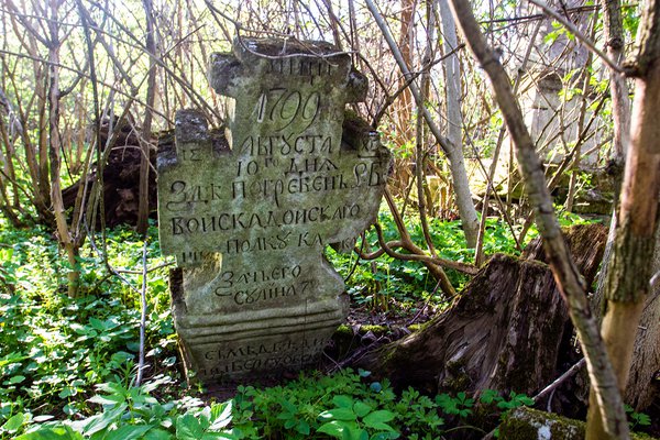 Найунікальніший зі знайдених тут автором надгробків датується ще кінцем XVIII століття. Епітафія сповіщає: «1799 год Августа 10 дня здѣ погрєбєнъ Р.Б. (раб Божий – авт.) войска донскаго полку казачєго Сулїна …….. Съ Мѣдвѣдицы Бєрєзовской…». Ім’я дончака, на жаль, сховане в землі.