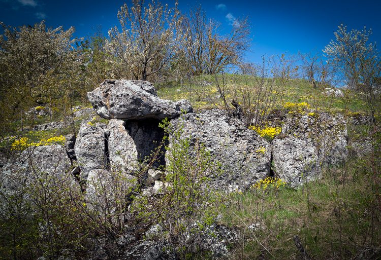 Найцікавіший біля Демківець. Там маємо цілий сакральний комплекс. Зокрема у найвищій точці скельного гребню безіменної товтрини, що ховається посеред лісу на околиці вище згаданого села, можна побачити чи то невеличку печерку, чи то чималий дольмен. Споруда явно рукотворна, але для більш точного розуміння що це таке, потрібно провести детальні дослідження з археологічними розкопками.