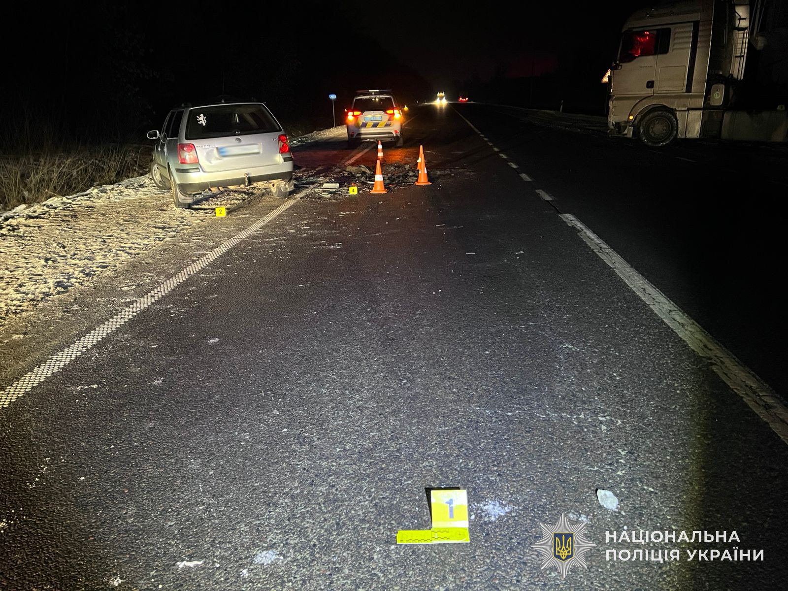 Як попередньо встановили правоохоронці, відбулося зіткнення автомобіля Volkswagen Passat, яким керував 22-річний мешканець Самбірського району, та вантажівки MAN під керуванням 38-річного жителя Вінницької області.