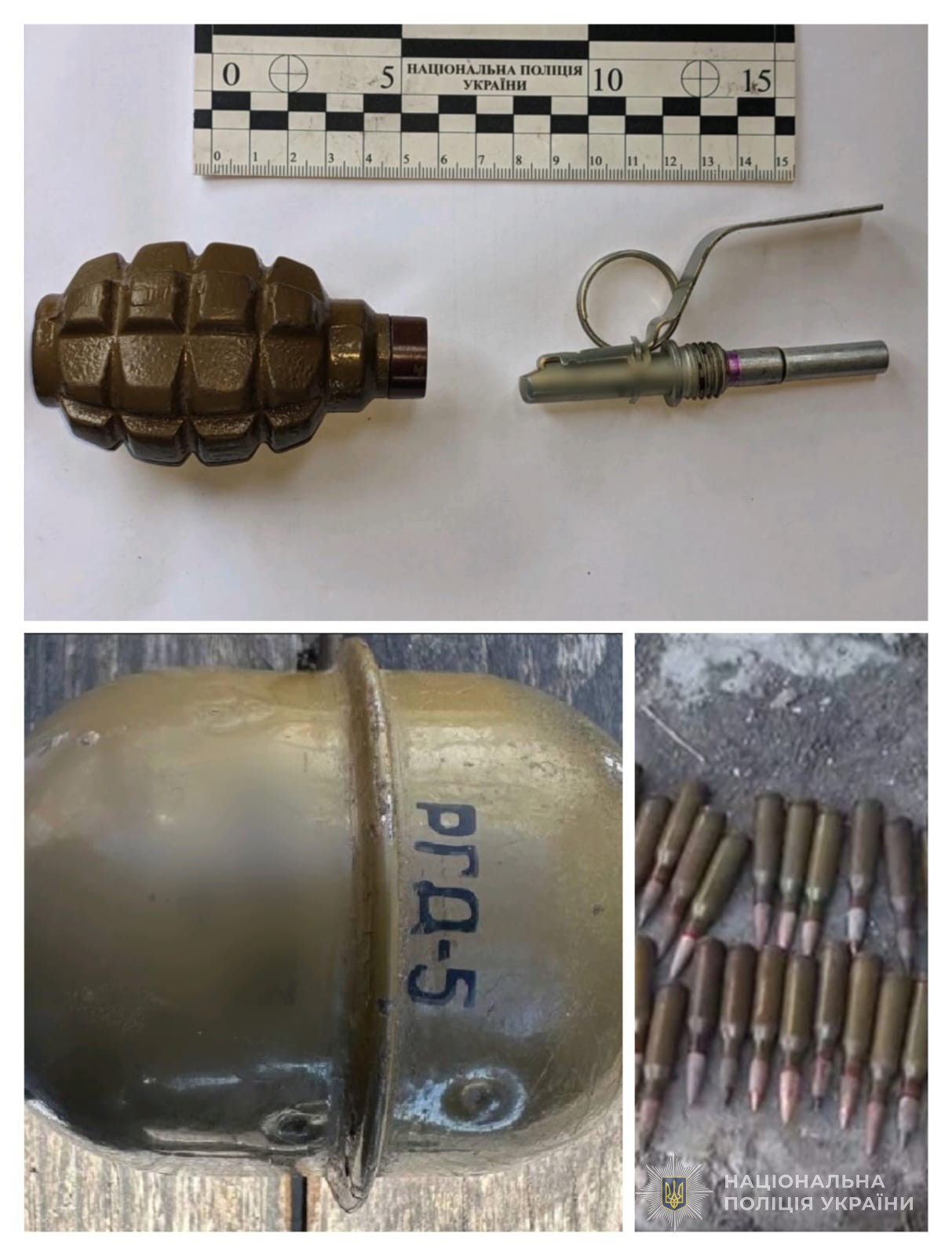 Поліцейські встановили, що чоловіки 50 та 53 років з Одеси та Ізмаїльського району підшукують покупців гранат. Провівши слідчо-розшукові заходи, правоохоронці задокументували, як молодший за віком фігурант за 2000 гривень збув в обласному центрі два корпуси ручних осколкових гранат РГД-5, а старший на території Одеського району продав один корпус ручної осколкової гранати Ф-1 із запалом до неї за 3000 гривень. Крім цього, вдома в одесита під час санкціонованого обшуку поліцейські виявили 371 набій калібру 5,45 мм до бойової нарізної вогнепальної зброї.