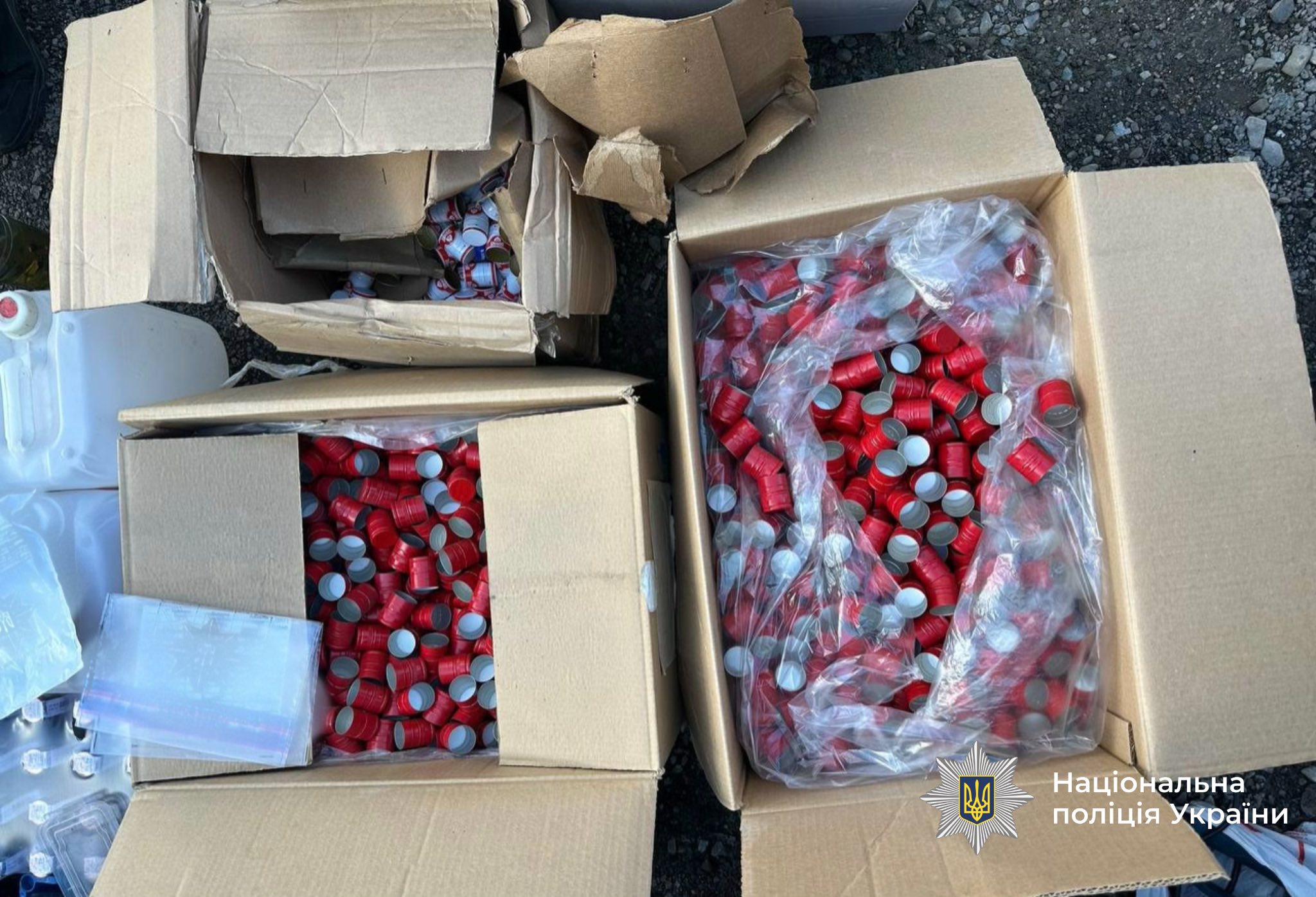 Серед вилученого – підроблені марки акцизного податку, тара для виготовлення підакцизних товарів, концентрати для розведення алкоголю та фасувальні матеріали.