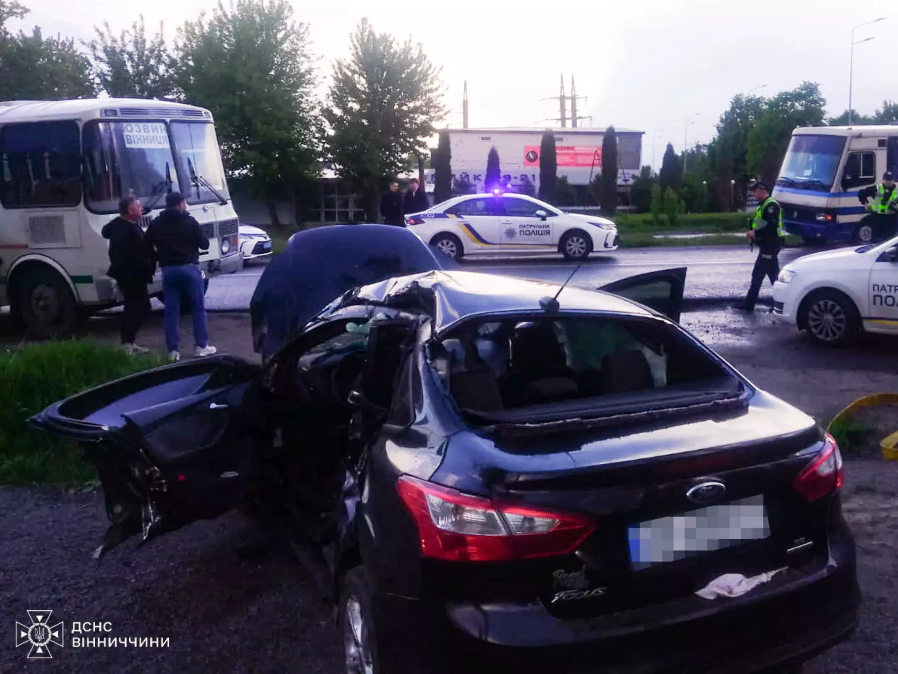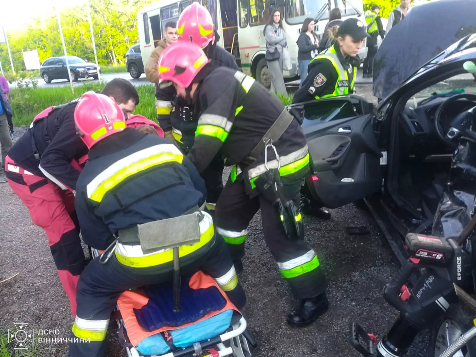 На Вінниччині внаслідок зіткнення легковика з двома автобусами постраждала літня жінка, – ДСНС. ФОТО | Події
