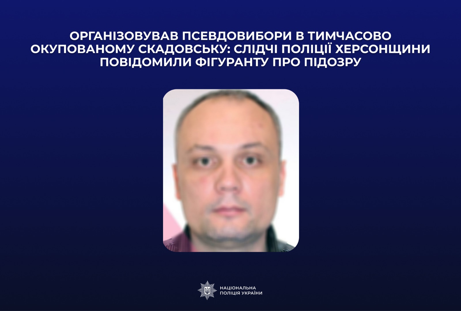 Зловмисником є житель тимчасово окупованого Скадовська. Він добровільно погодився очолити незаконно створений окупантами орган місцевої влади та забезпечив проведення незаконних виборів. Нині йому заочно повідомлено про підозру в колабораціонізмі.