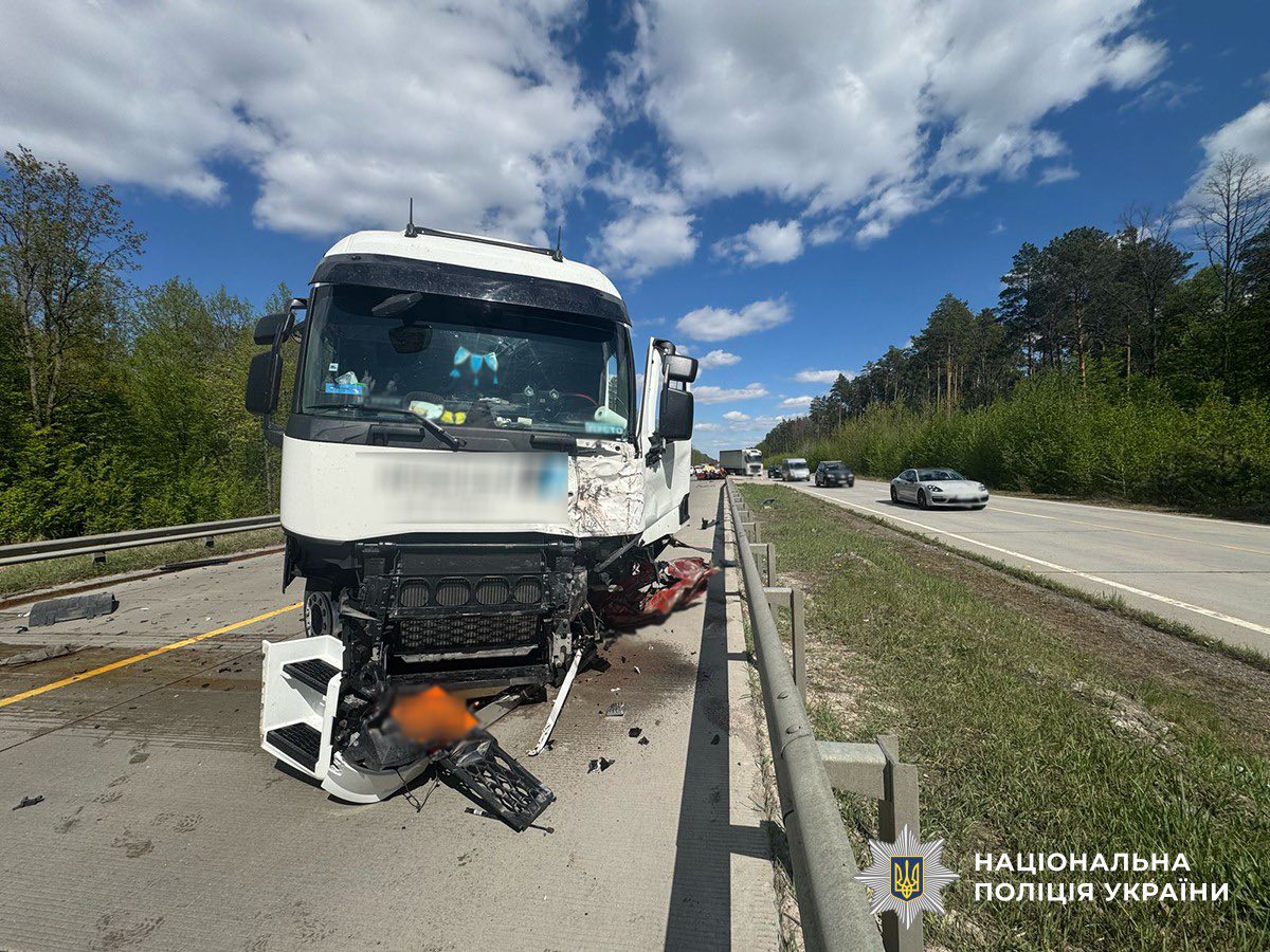Попередньо, трапилося зіткнення автомобіля «Renault Kangoo» із зустрічним сідловим тягачем «Renault», за кермом якого знаходився 65-річний житель Київщини.