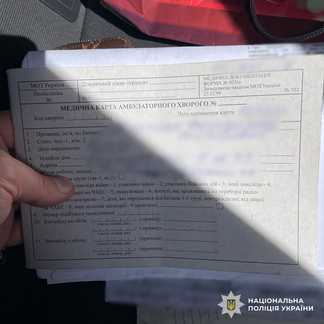 Оперативники Департаменту внутрішньої безпеки Національної поліції України спільно зі слідчими поліції Києва викрили місцеву мешканку у вчиненні кримінального правопорушення. З’ясувалося, що 29-річна жінка пропонувала послуги з оформлення фіктивних медичних документів для уникнення мобілізації та можливості подальшого виїзду за кордон.