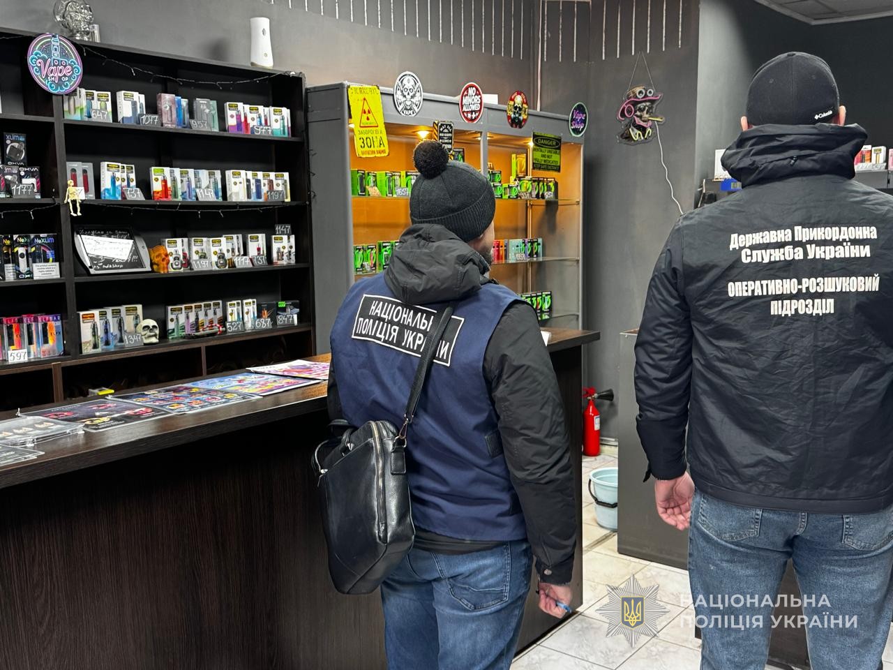Під час санкціонованих обшуків у помешканні фігуранта та в точці продажу поліцейські вилучили близько тисячі електронних сигарет, понад 12 тисяч одиниць рідини до них, готівку, банківські картки, мобільні телефони та інші речові докази.