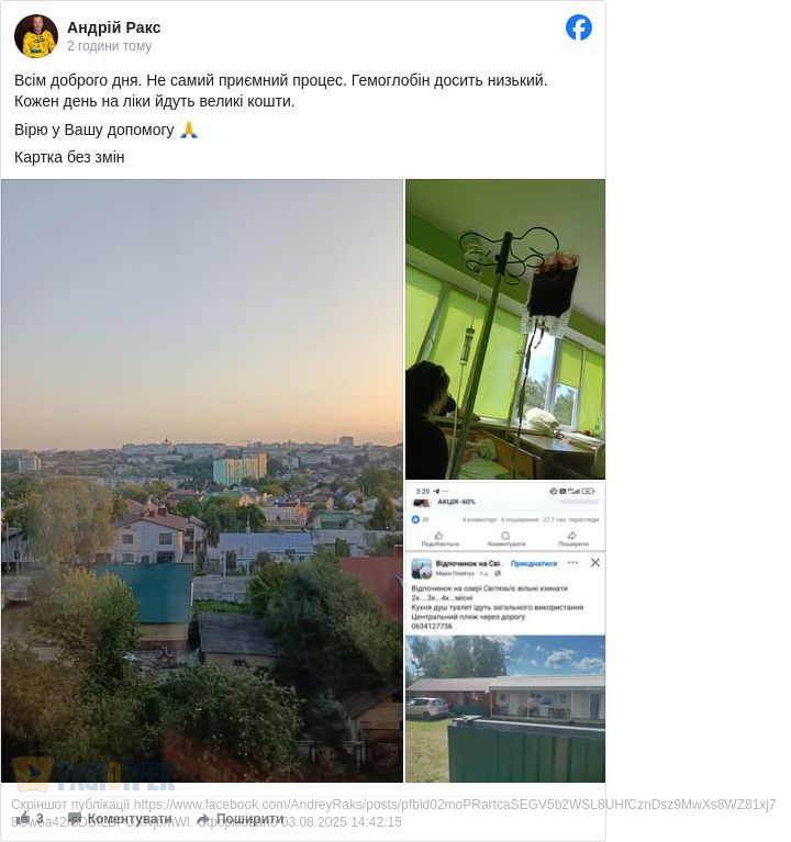 На жаль, його переслідує важка хвороба печінки, яка періодично вимагає госпіталізації та дороговартісного лікування препаратами, які не забезпечуються НСЗУ.