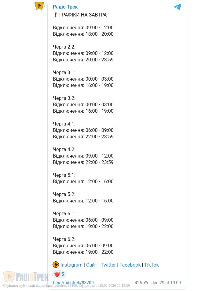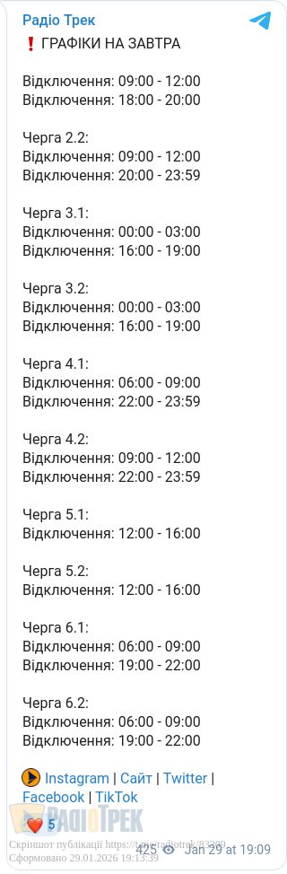 Енергетики наголошують, що цей графік є попереднім і може змінюватися залежно від коригування доведених лімітів споживання.
