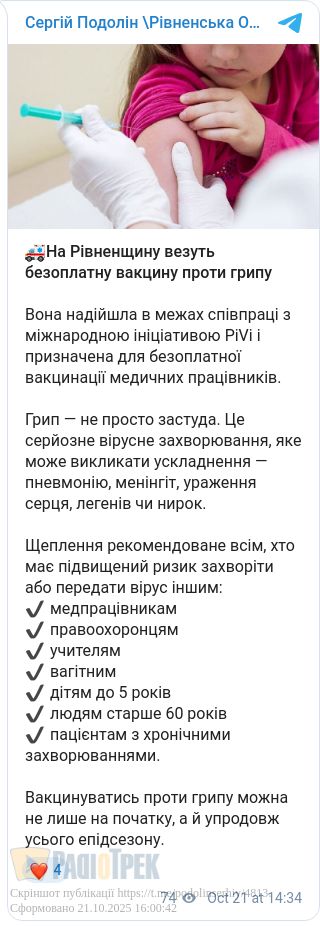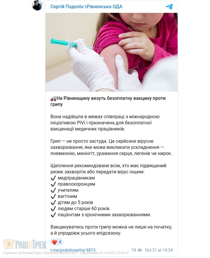 Безоплатну вакцину проти грипу привезуть на Рівненщину. Препарат надійшов у межах співпраці з міжнародною ініціативою і призначений для щеплення медпрацівників.