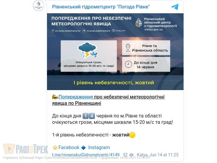 Це І рівень небезпеки, «жовтий», – повідомили в Рівненському обласному гідрометцентрі.