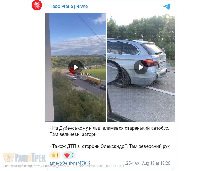Також на Дубенському кільці зламався автобус. Там великі затори.