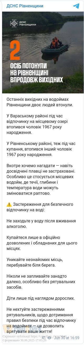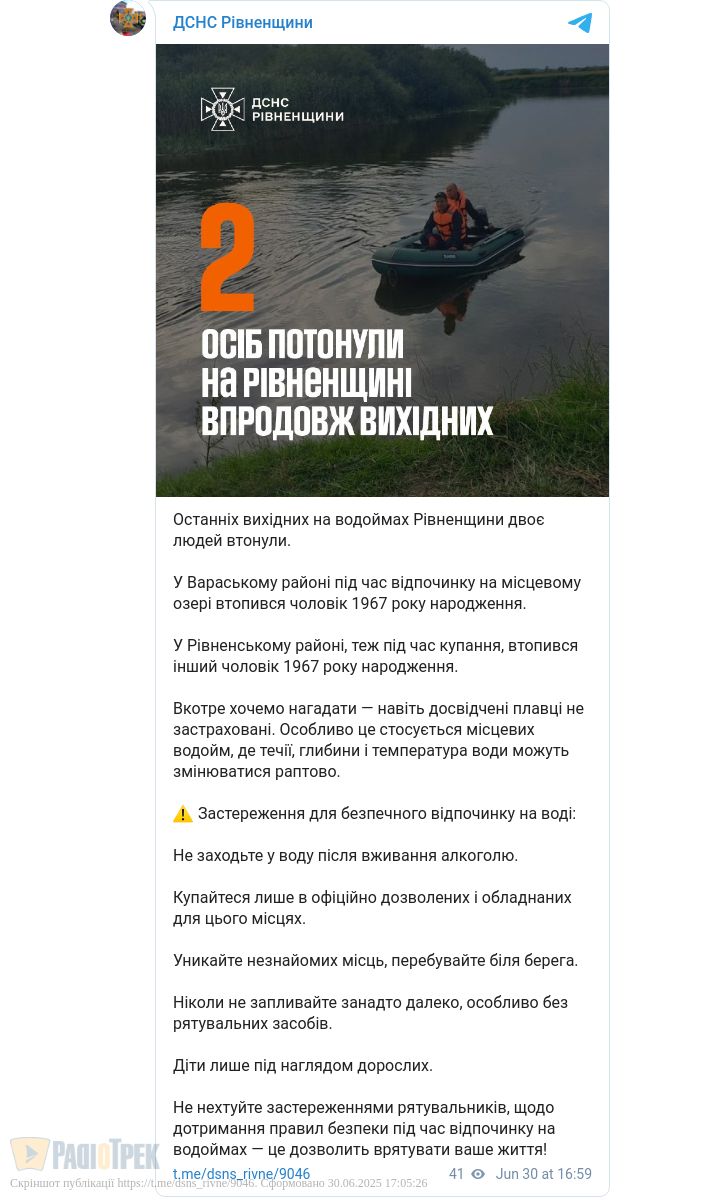 Двоє людей втопилися цими вихідними на Рівненщині.