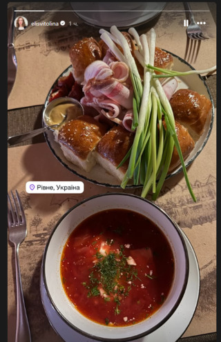 На своїй сторінці в Instagramі Еліна Світоліна підтвердила, що перебувала у Рівному і навіть посмакувала нашого борщу з пампушками.