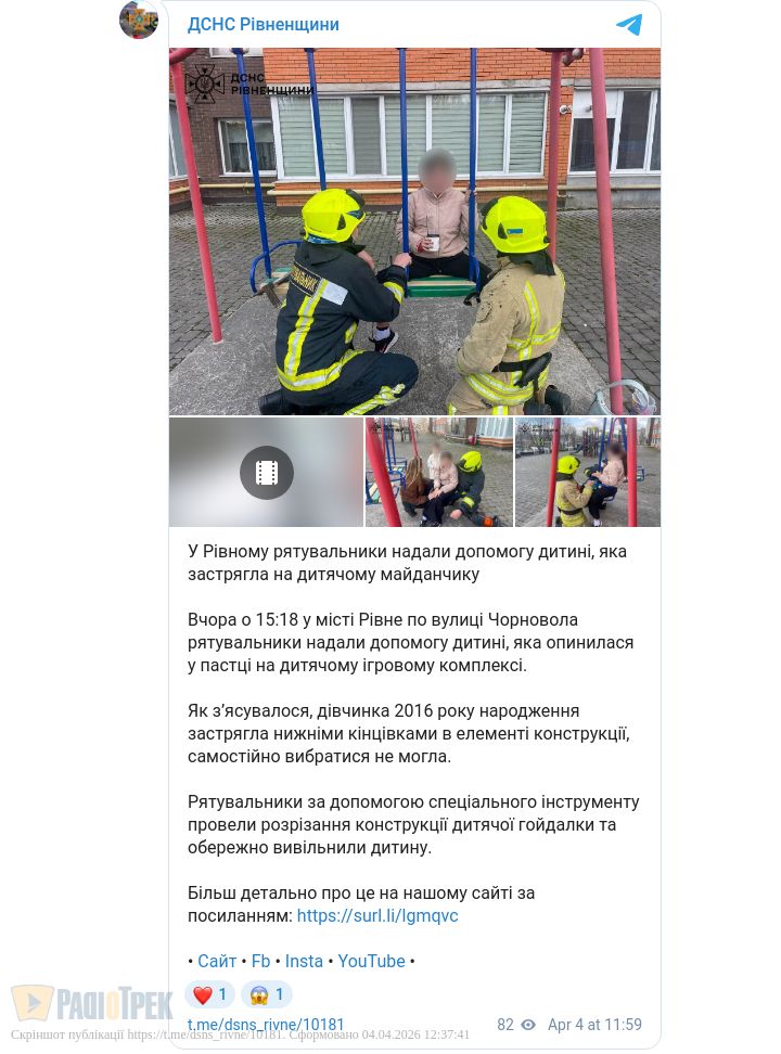 Гра перетворилася на пастку: у Рівному надзвичайники рятували дівчинку на дитмайданчику