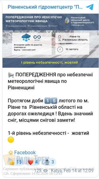 Завтра, 15 лютого, у Рівному та області очікується ожеледиця.