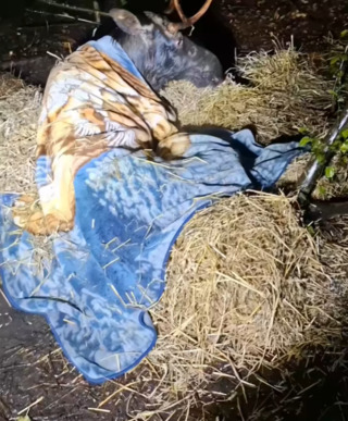 Втім, тварина дуже знесилена і досі не встає.