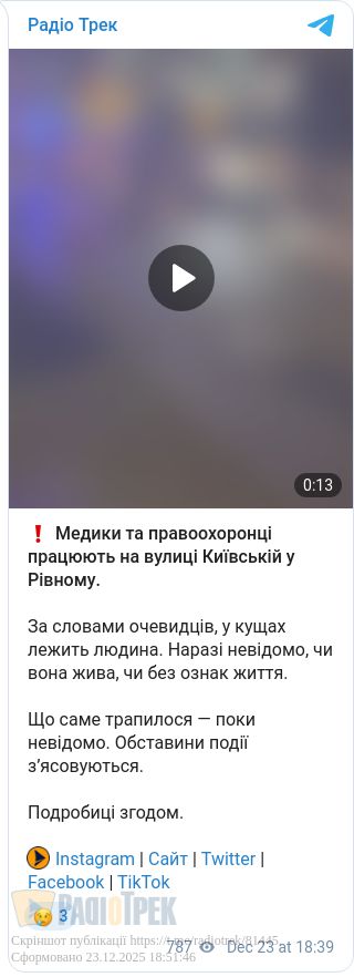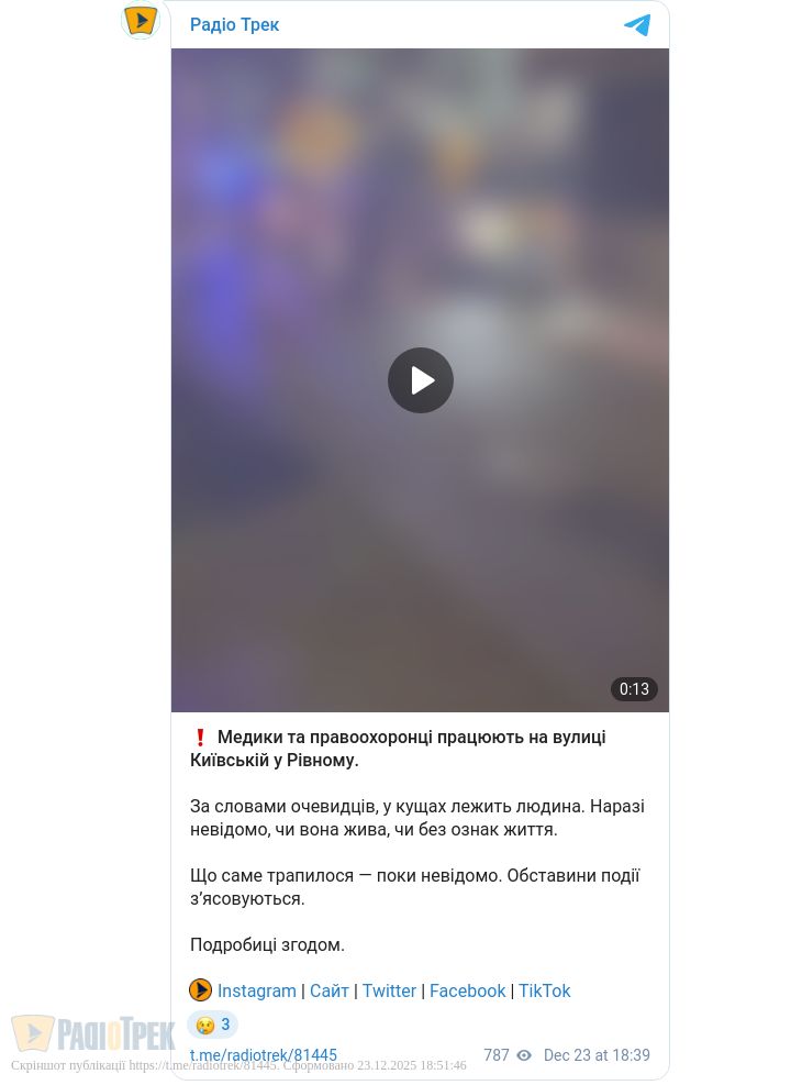 Подробиці згодом. Наразі журналісти Радіо Трек очікують коментар з поліції щодо події.