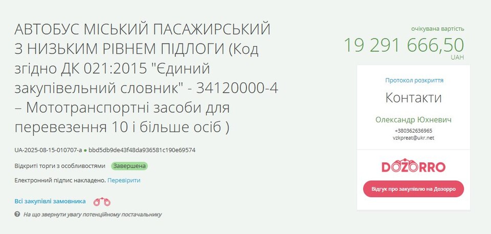 За ці кошти на дороги міста придбають 5 автобусів з низьким рівнем підлоги. Єдиним учасником стало підприємство «Авто-Бас».