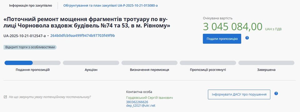 Аукціони призначення підрядника відбудеться на 30 жовтня, а завершити роботи мають до кінця року.
