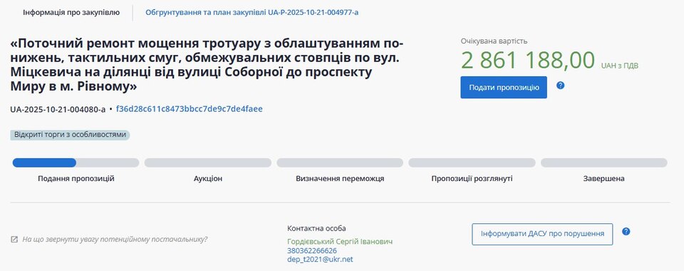 На сайті Прозорро опублікували два тендери щодо плану робіт на Чорновола і Міцкевича. Там буде поточний ремонт фрагментів тротуару, з облаштуванням понижень, тактильних смуг і обмежувальних стовпців.