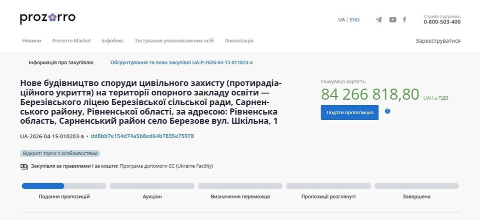 Майже 85 мільйонів гривень планують витратити на будівництво нового укриття у ліцеї на Сарненщині. Такий тендер оголосили на сайті Прозорро.