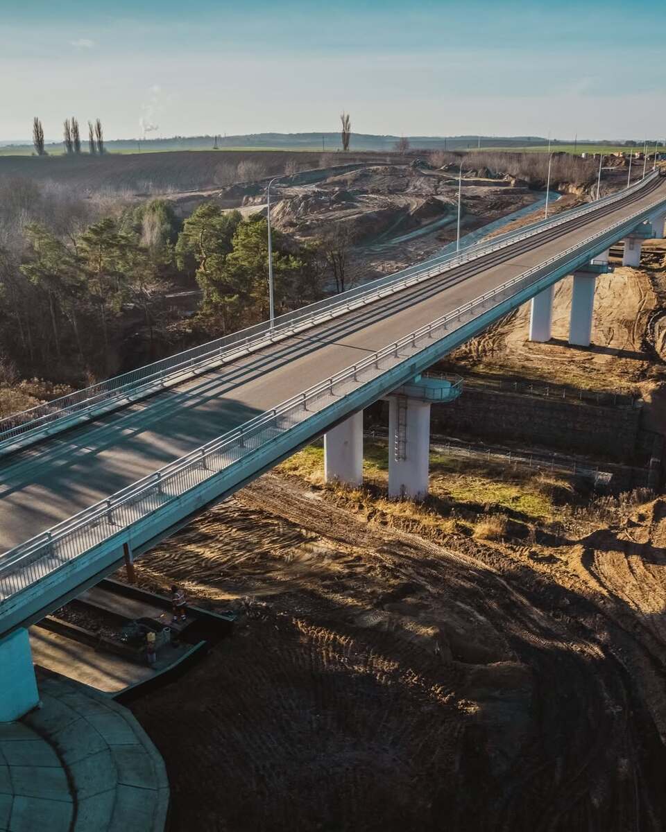 Будівництво почали ще у 2019 році, але через війну роботи зупинили. Відновили їх наприкінці серпня 2025 року після перемоги в тендері компанії Autostrada.