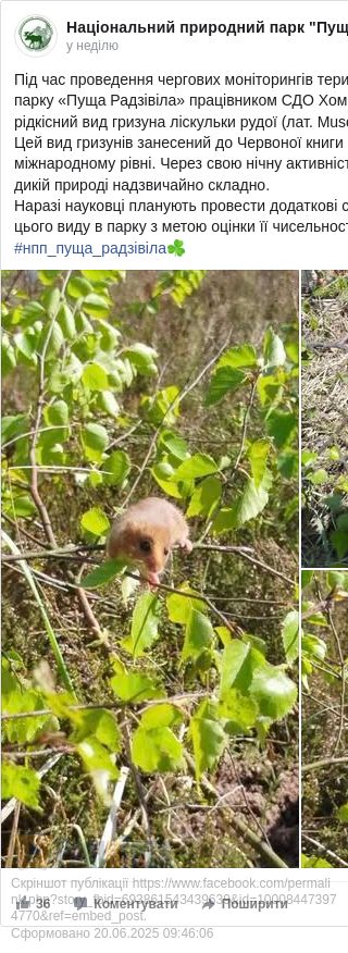 Днями один з працівників Національного природного парку «Пуща Радзівіла» знайшов рідкісного гризуна.
