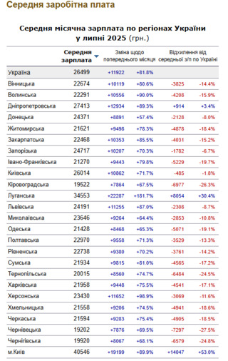 Загалом, за даними Мінфіну, у липні середня зарплата по Україні була 26,5 тисяч грн.