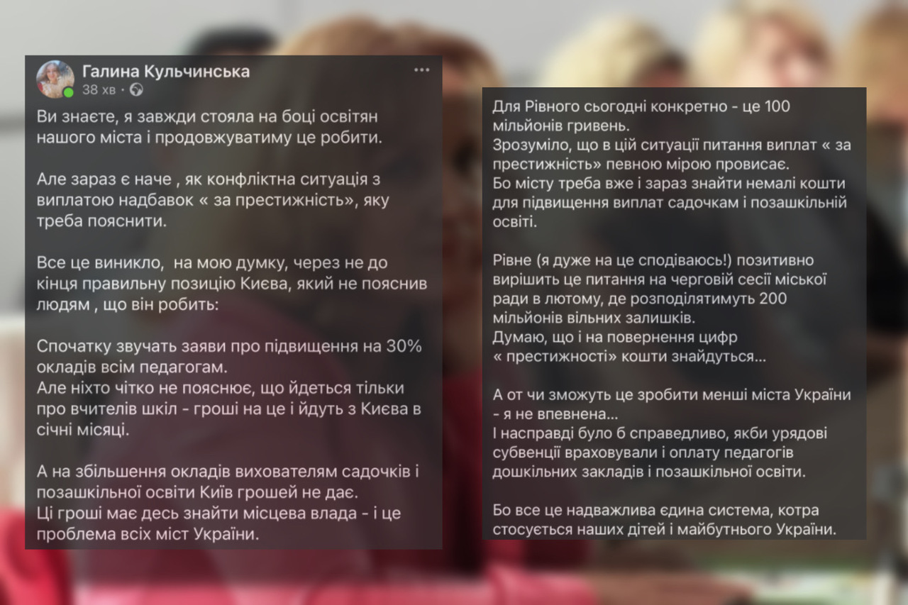 Депутатка Рівненської міської ради Галина Кульчинська прокоментувала ситуацію з виплатами надбавок «за престижність» для педагогів.