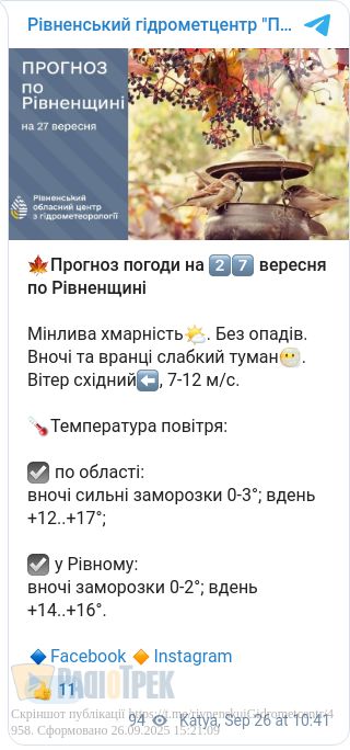 - у Рівному: вночі 0–2°, вдень +14…+16°.