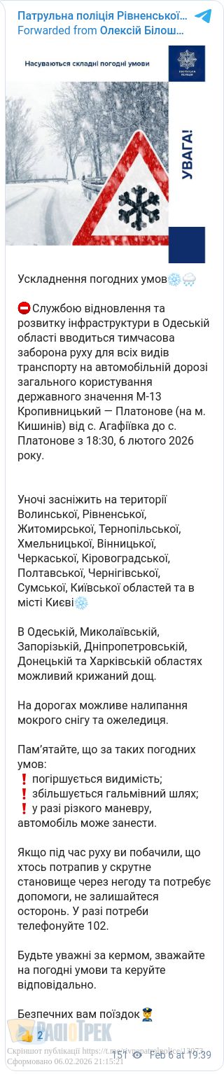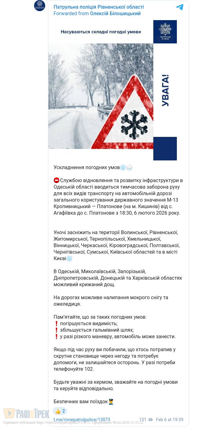 У деяких областях, зокрема в Одеській, тимчасово обмежили рух транспорту на трасі М-13.