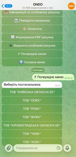 Світлопостачальна компанія ONDO запустила новий Telegram-бот, який дозволяє споживачам електроенергії швидко отримувати інформацію щодо своїх особових рахунків та користуватися основними сервісами онлайн.