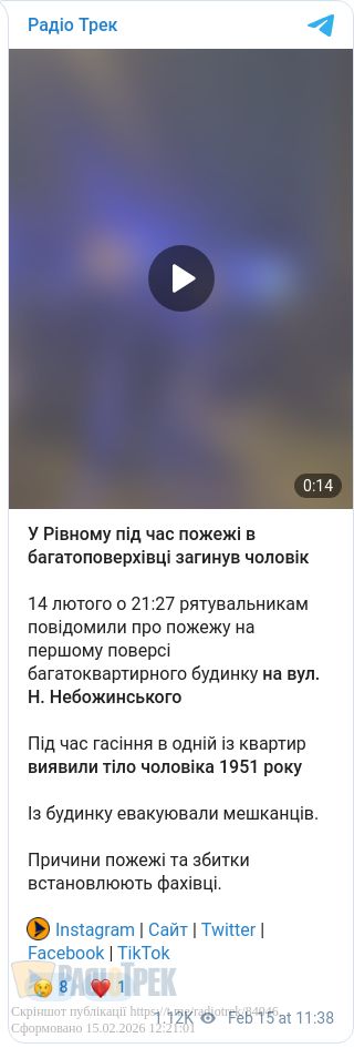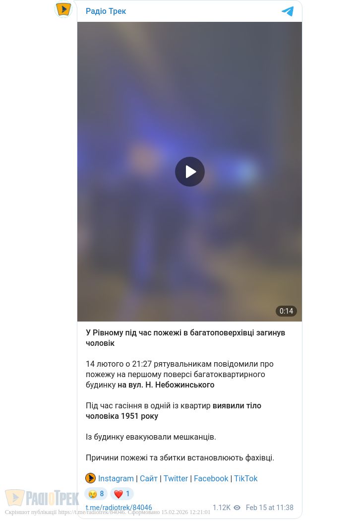 У Рівному під час пожежі в багатоповерхівці загинув чоловік.