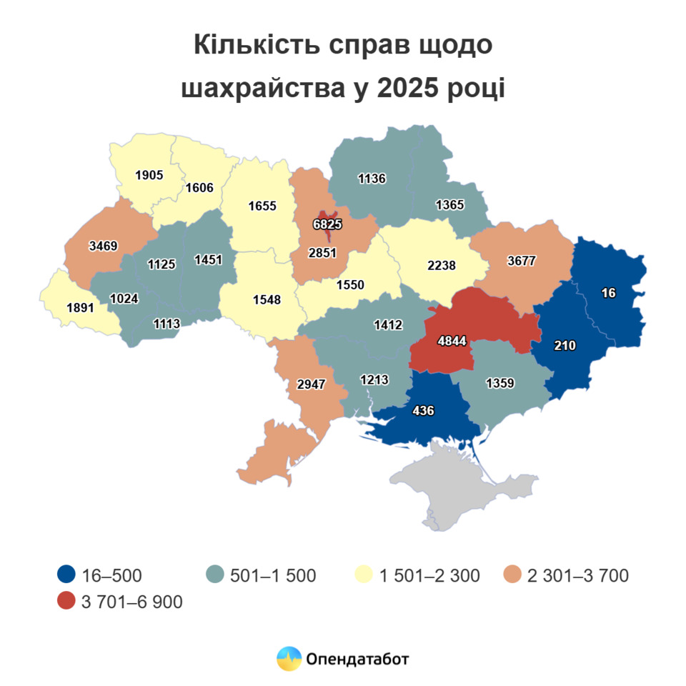 Попри спад, підозру оголосили лише у кожній п’ятій справі, а до суду дійшло 18%. Найбільше шахрайств — у Києві, на Дніпропетровщині та Харківщині.