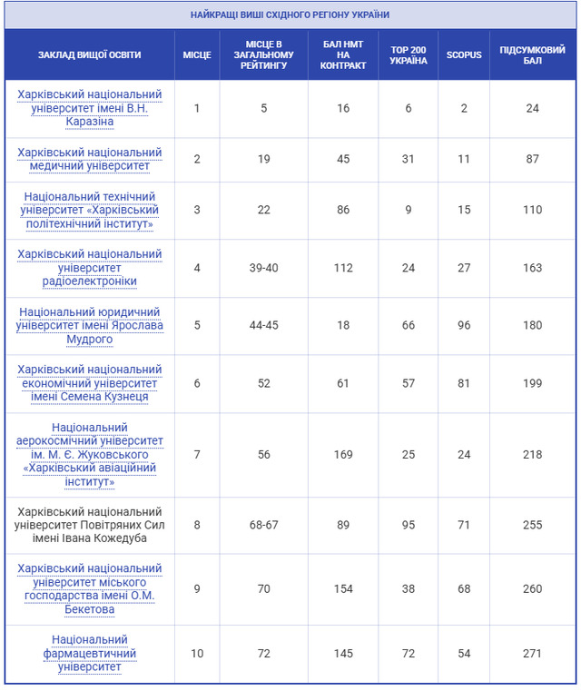 Традиційно для укладання Консолідованого рейтингу ЗВО використано відомі рейтинги університетів країни: «Топ-200 Україна», «Scopus» та «Бал НМТ на контракт», кожен з яких використовує важливі критерії оцінювання.