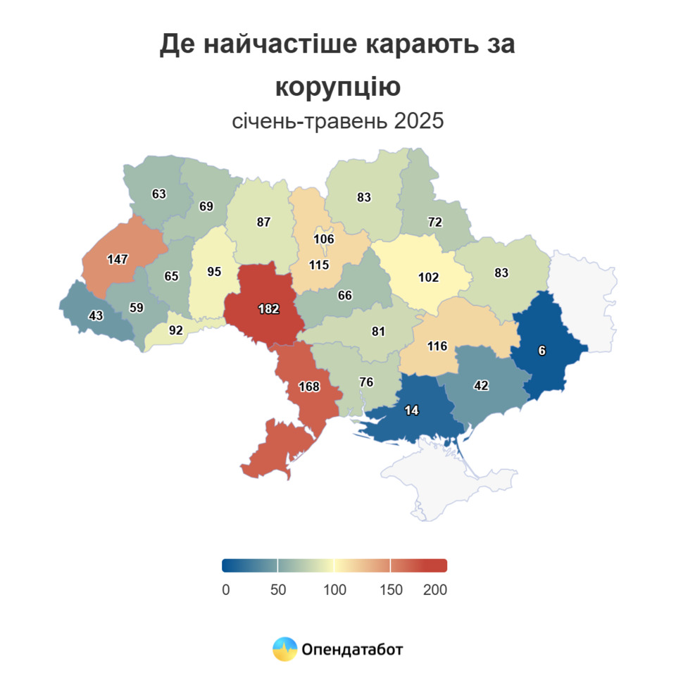 Це на 37% більше, ніж торік. Проте все ще менше, ніж до початку великої війни. У 97% випадків корупціонери відбуваються штрафом.