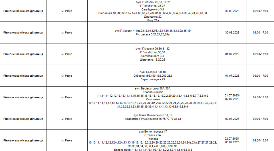 Повний графік планових ремонтних робіт можна побачити на сайті Рівнеобленерго у розділі «Споживачам».