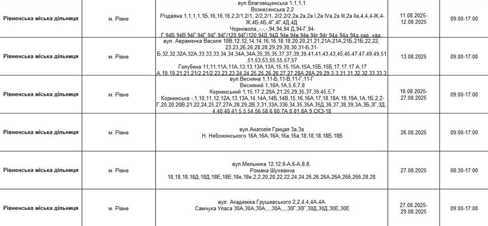 У зв’язку з плановими ремонтними роботами буде відсутнє електропостачання на частині вулиць Рівного. Світла не буде на таких вулицях:
