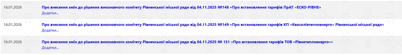 Тарифи на тепло у Рівному може зрости. Виконавчий комітет підготував три проєкти рішень щодо перегляду цін на теплоносій для населення, підприємств та релігійних організацій.