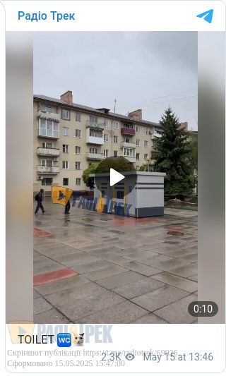 Як повідомив Радіо Трек директор департаменту інфраструктури та благоустрою Рівного Руслан Гудима, це не остаточне місце розташування туалету, а місце його вивантаження.