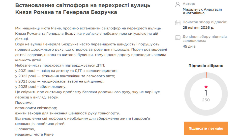 Петиція на сайті Рівнеради