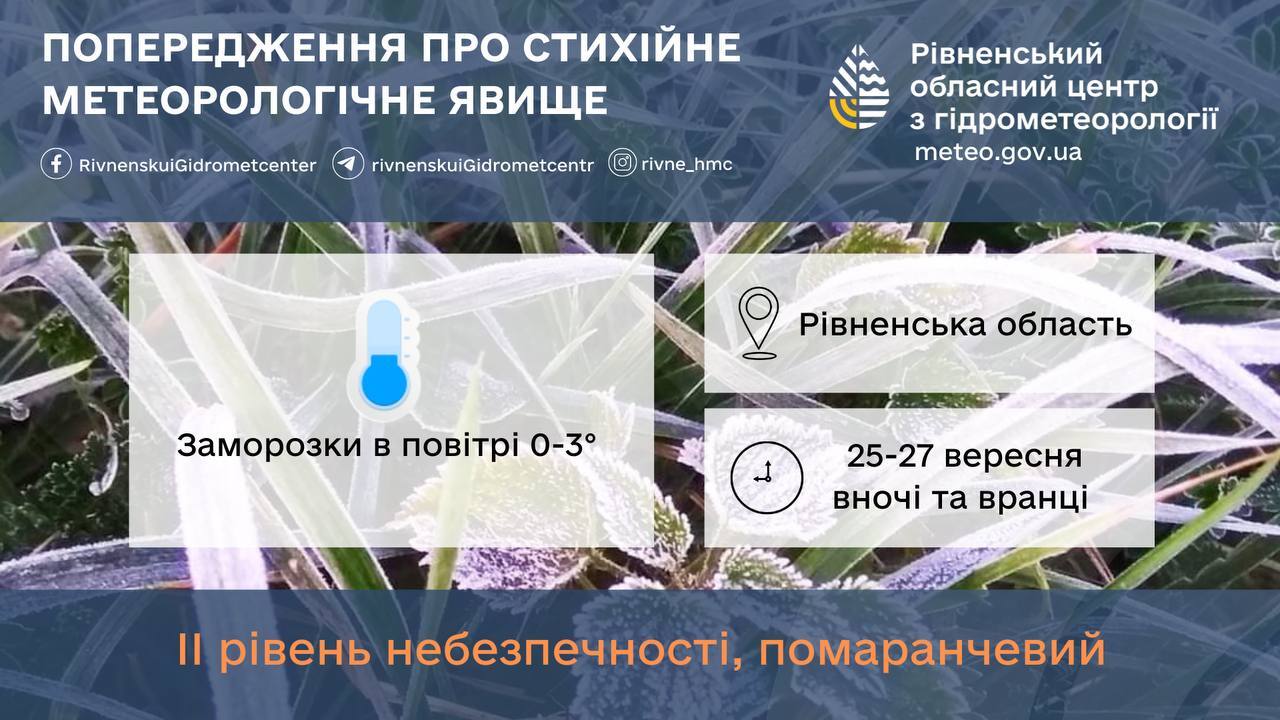 Вночі та вранці 25-27 вересня, очікуються заморозки в повітрі 0-3°!