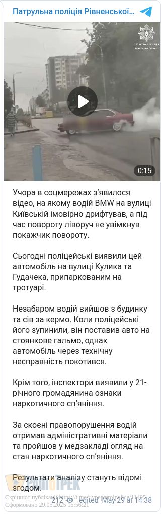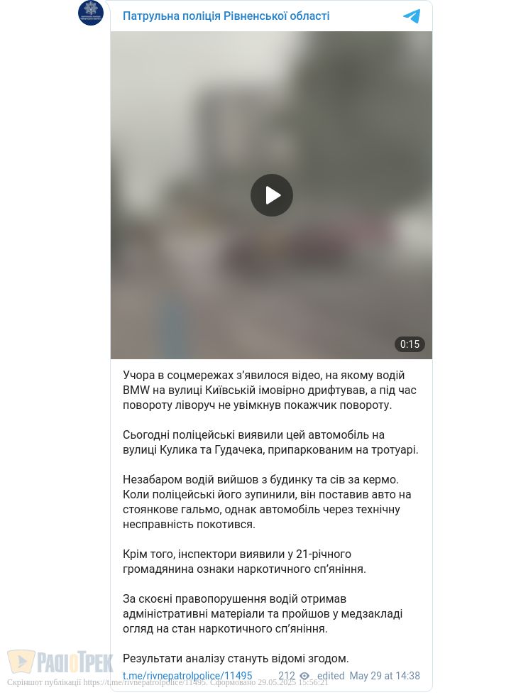 У Рівному водій BMW дрифтував на вулиці Київській та не вмикав поворотник. Таке відео поліцейські виявили напередодні.