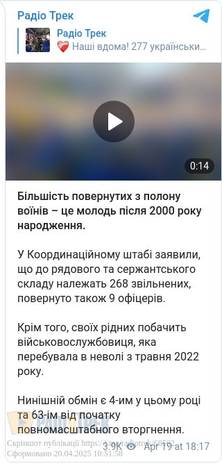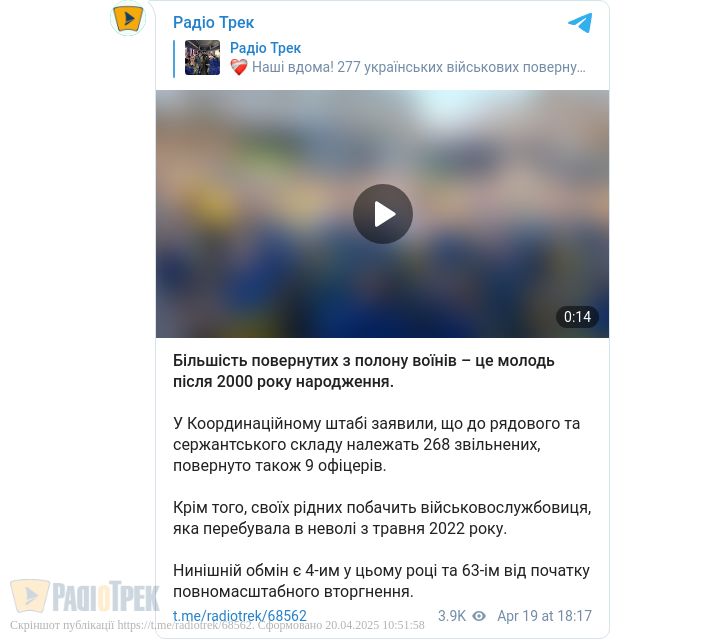 Це вже четвертий обмін у 2025 році та 63-й загалом з початку повномасштабної війни.