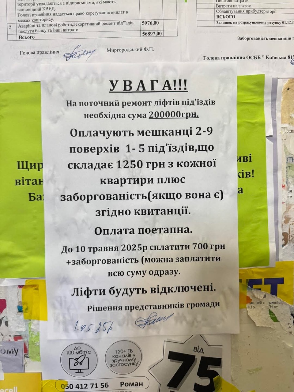 Несплата або інша причина не є підставою для відключення ліфтів.
