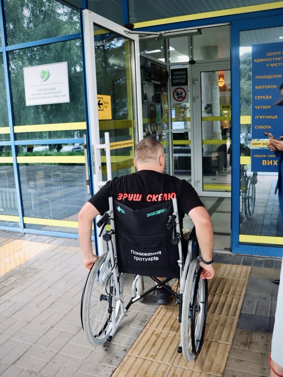 ЦНАП у Рівному перевірили на безбар’єрність. Представники громадської організації «Зруш Скелю» протестували адмінцентр у межах всеукраїнського проєкту зі створення доступного середовища для маломобільних груп.