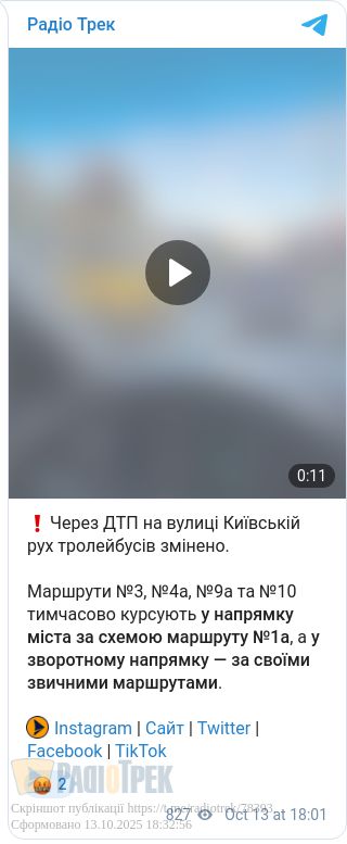Маршрути №3, №4а, №9а та №10 тимчасово курсують у напрямку міста за схемою маршруту №1а, а у зворотному напрямку — за своїми звичними маршрутами.