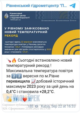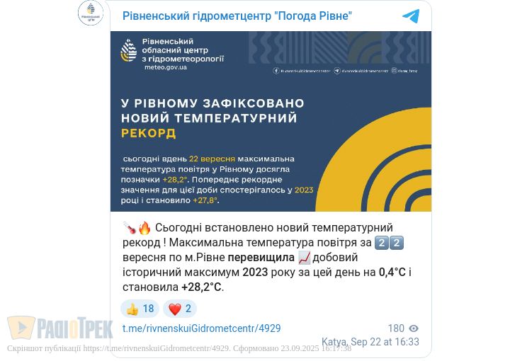 Попереднє рекордне значення зафіксували два роки тому. Тоді було 27 цілих і 8 десятих тепла.